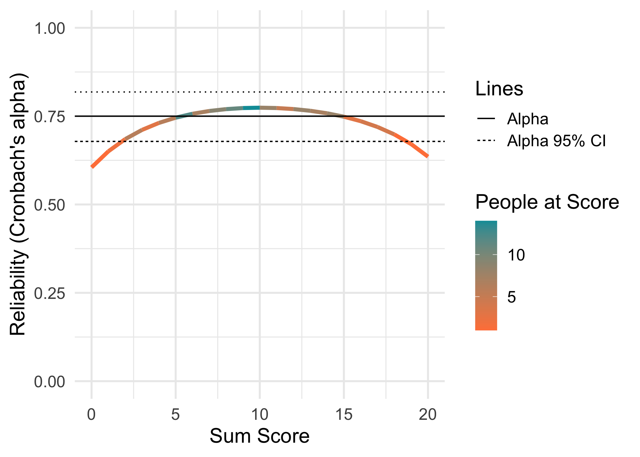 This post has two purposes. The primary one is to compare some reliability metrics, since a new preprint (Bignardi, Kievit, and Bürkner 2025) inspired some ideas. They propose a general “relative measurement uncertainty” (RMU) metric, applicable in many situations thanks to Bayesian modeling and posterior MCMC draws. My idea that is evaluated here is to use “plausible values” (Mislevy 1991; Wu 2005) instead of fully Bayesian model posterior draws to estimate the RMU. This would make the RMU metric more accessible to users unfamiliar with Bayesian statistics, and easily applicable for existing Rasch measurement software in R, such as my package easyRasch. Please read the preprint by Bignardi and colleagues to learn how the RMU is estimated. A summary is available on pages 12-13.